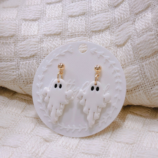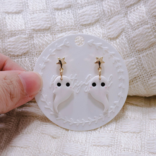 Handcrafted Starry Ghost Dangle Earrings – Cute White Polymer Clay Halloween Jewelry