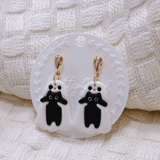 Handcrafted Ghost Hugging Black Cat Dangle Earrings – Cute Polymer Clay Halloween Jewelry