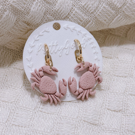 Cute Crab Dangle Earrings | Handmade Textured Coastal Huggies