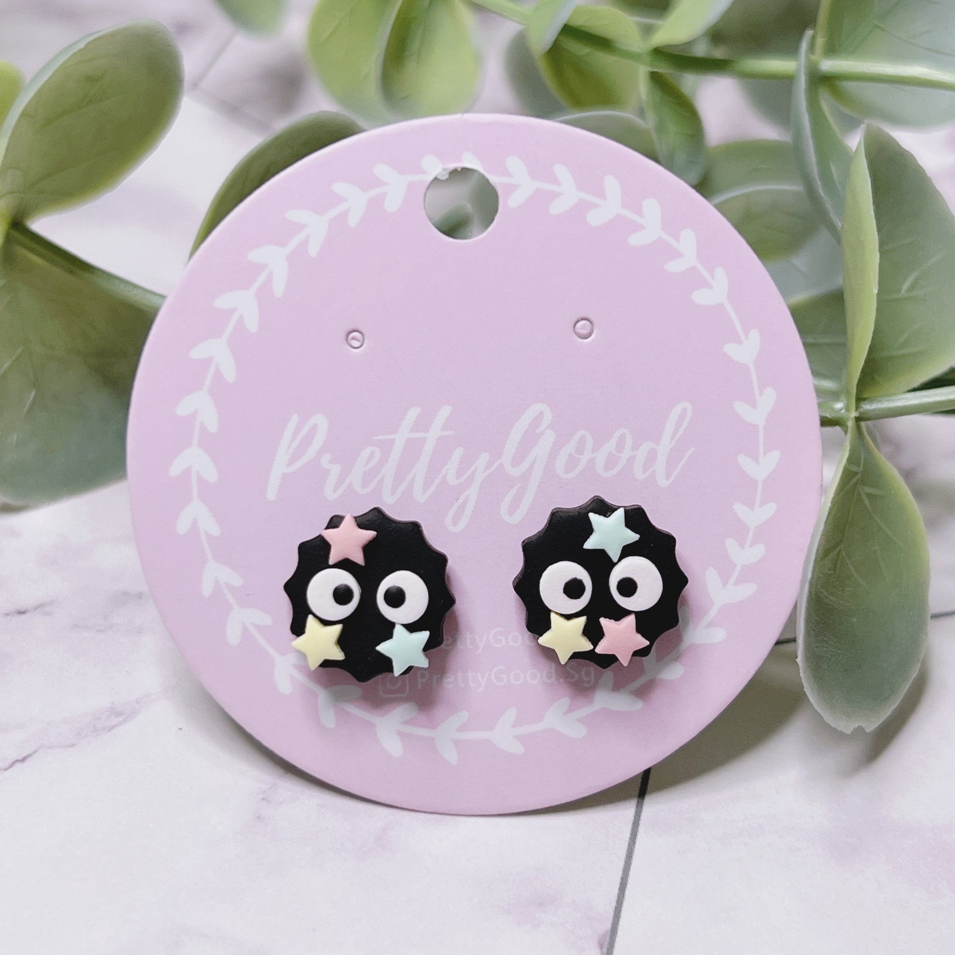 Handcrafted Soot Sprite Konpeito Studs, Handmade in SG, Susuwatari Earrings, Dust Bunnies, Cute Earrings, Gift for Her
